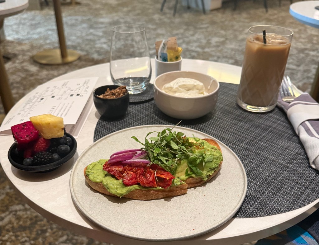 My flight arrived at LAX at 6:55am, which was more than 30 minutes early. It wasn’t clear to me if I’d have access to the Delta One lounge since my Delta One flight was actually out of SLC, but given that the Delta site says “Same-day departing or arriving Delta One ticketed passengers…” I figured it didn’t hurt to try. It must be a rare situation, as the agent at the lounge couldn’t get my boarding pass to scan on his end, but he verified that I was flying Delta One on that day, and said he didn’t see why I wouldn’t be given access to the lounge and let me in. I have to say, the lounge was really nice and I appreciated that it was full service anywhere you sit, unlike United’s Polaris lounges. That being said, after I was served a meal, it felt like I was a bit forgotten about if I didn’t try to flag down staff to help me. I ordered avocado toast and an iced latte, and eventually I had a mimosa. The food was good, but the server forgot that I ordered water so I had to ask another server for water as well. I did notice that just like in a Delta Sky Club premium alcohol and some food items have a cost with them, unlike in the United Polaris lounge. Everyone was friendly, but perhaps it was a bit difficult to keep up with each person in the lounge given the open seating arrangement. I think Virgin Atlantic has a better system with QR codes at every table in their Upper Class lounge, and United has a designated full-service restaurant in their Polaris lounges that makes it a bit easier to keep up with who is there for full service dining – the downside being that when the lounge restaurant is busy, there’s often a wait.