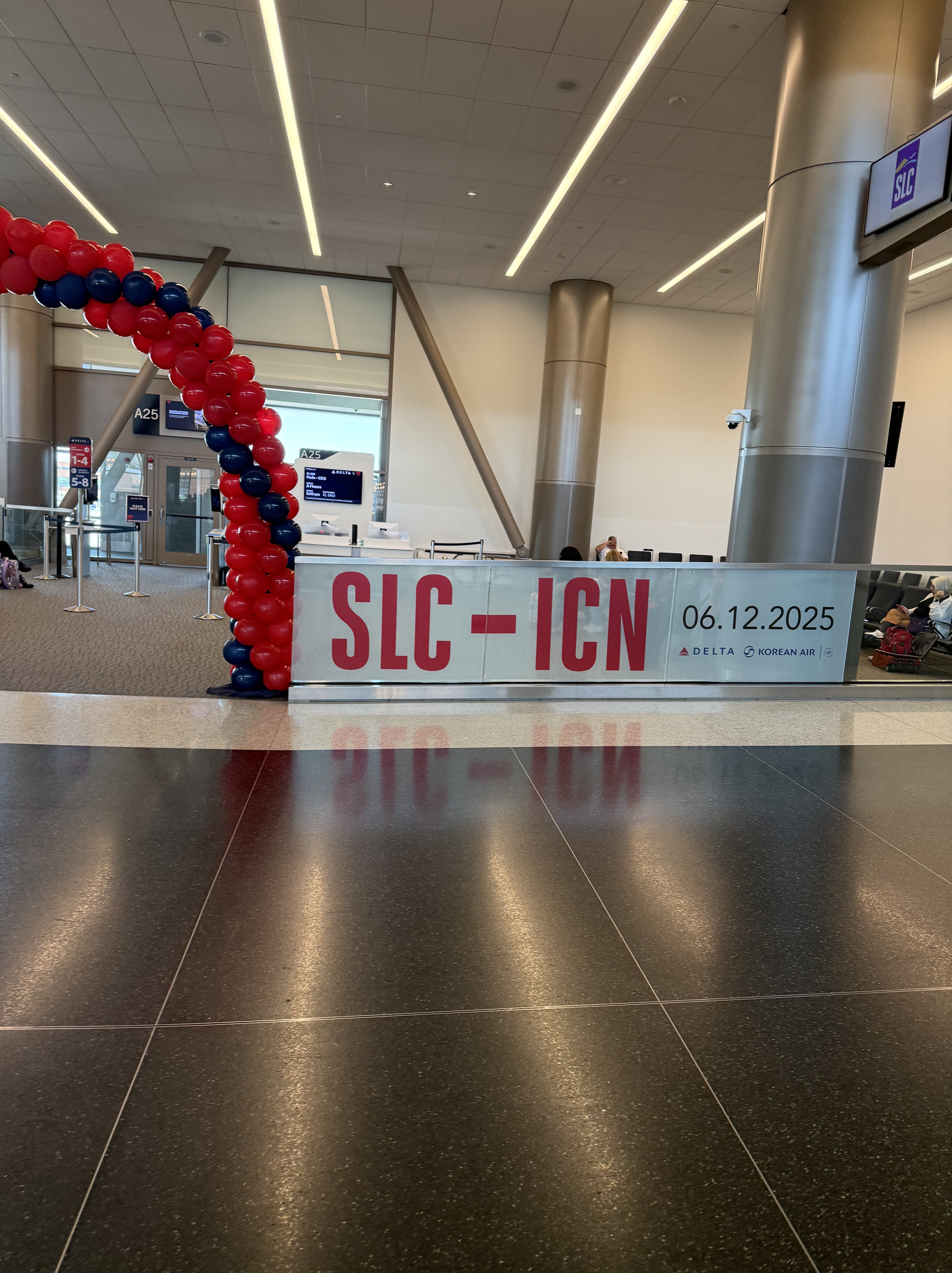 There isn’t a whole lot for me to write about SLC either here. SLC has a Delta Sky Club that is pretty much similar to most Sky Clubs: a little bit crowded, but generally clean and easy to get service. It was so unmemorable that it seems the only photo I took in the airport was of my gate; it was rather neat to see the celebratory atmosphere at the gate, since Delta very recently launched its non-stop service from SLC to Seoul (ICN).