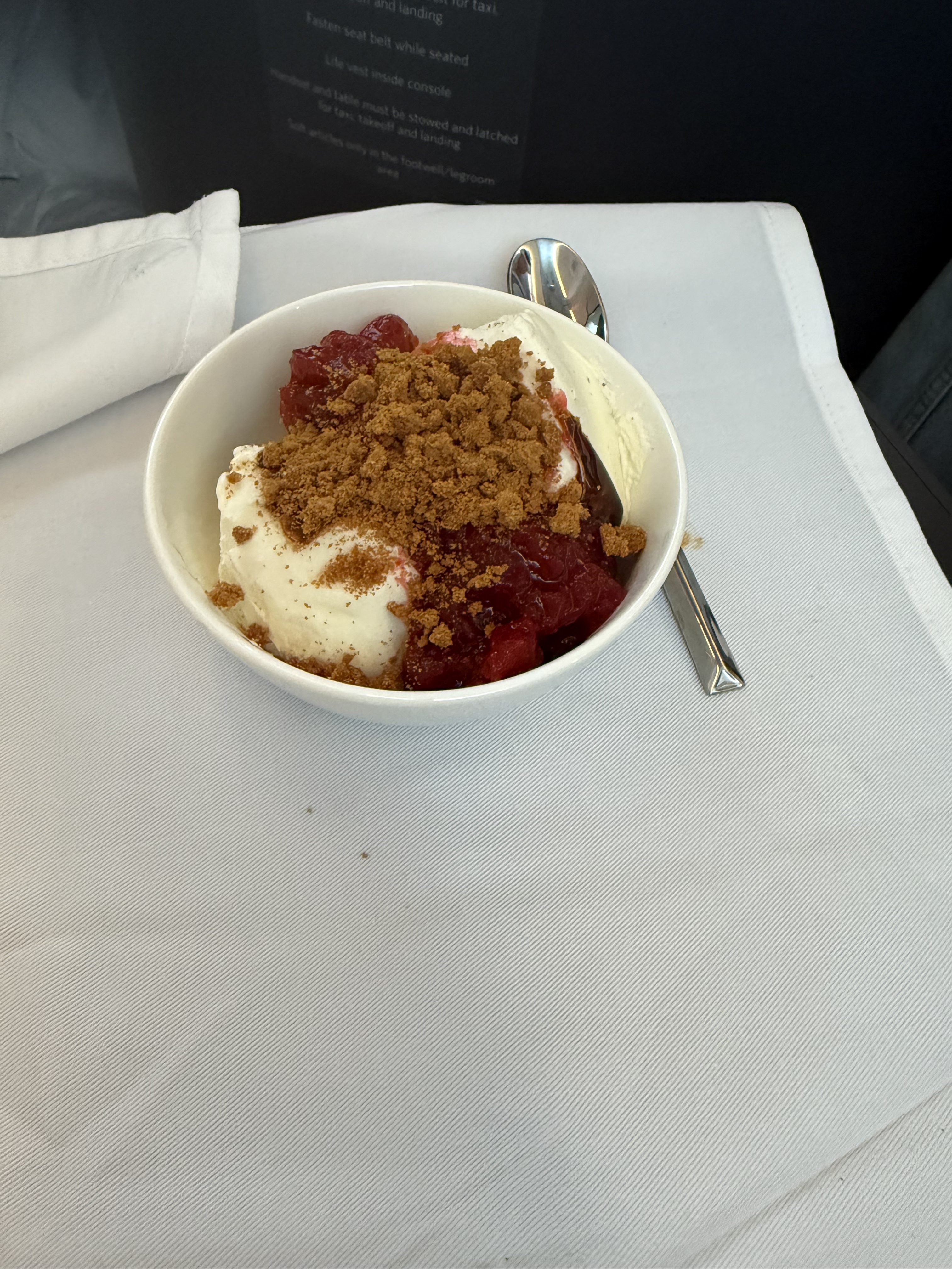 For dessert there were a few options: some kind of cake (carrot maybe?), a cheese plate, or an ice cream sundae. I ended up choosing the ice cream and had them put the cherries and the Biscoff cookie crumble on it, and it was delicious, by far the best part of the meal. I have a bit of a sweet tooth though, so it’s hard to disappoint me with dessert!